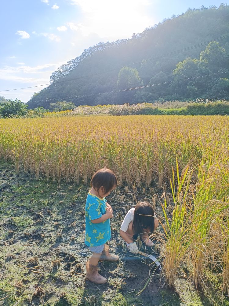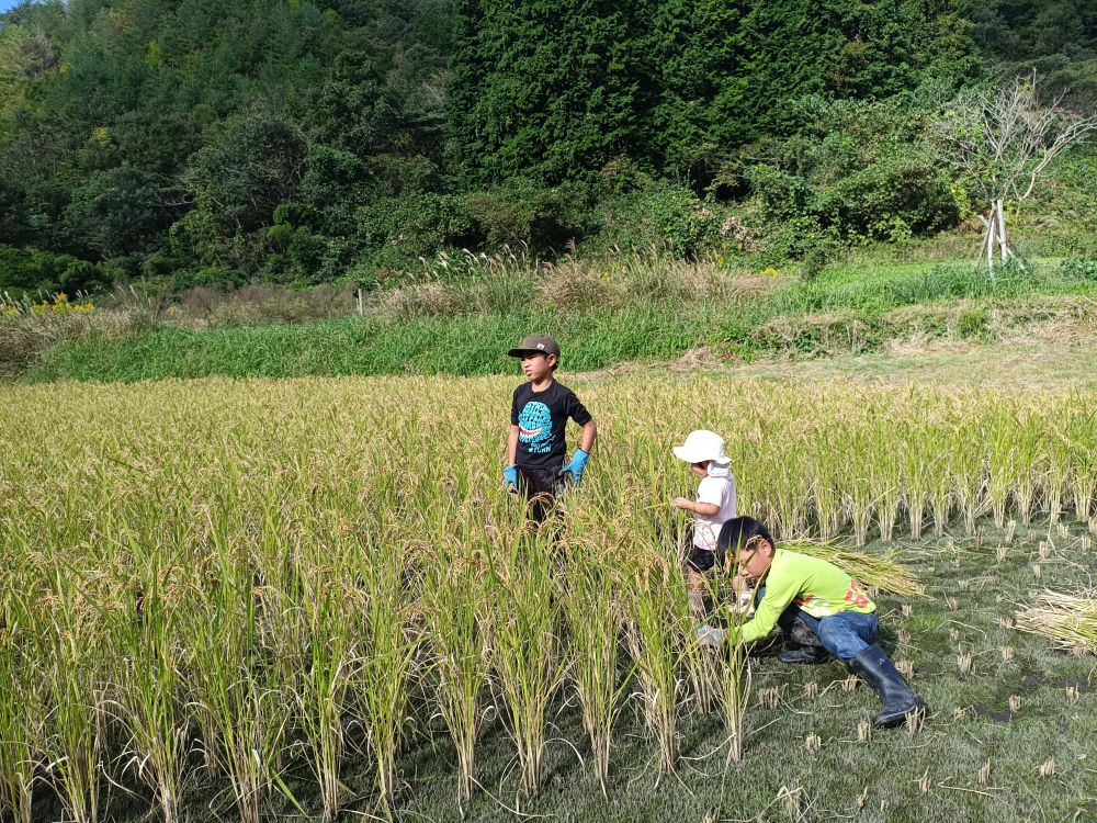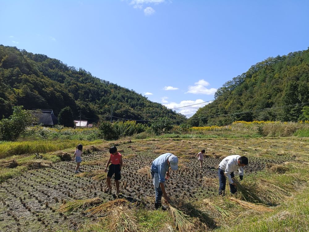 しんは教えるととても綺麗に稲を刈ってくれています。成長したなぁ。