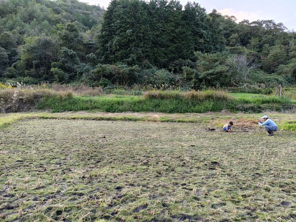 息子ズに学校終わってから手伝ってもらい、3枚目の田んぼが稲刈り完了。